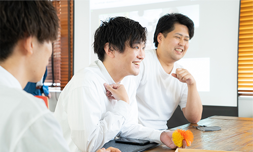 まずは、代表、営業、上長、人事の5人で「やりたい事・やってみたい事」をしっかりヒアリング。生涯現役エンジニアとして活躍するためにキャリア形成のためのロードマップを設定致します。