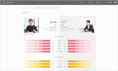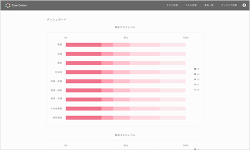 これまで部下のスキル診断状況を把握し、フォローするのに多くの時間を割いていましたが、TRUE COLORSを導入してからは、システム上ですぐに確認できるようになり、管理業務の負担が軽減されました。そのおかげで、面談では確認作業に時間を取られず、部下の成長支援やキャリア目標の調整に集中できるようになりました。