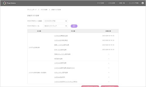 診断シートの入手や提出先を探す手間がなくなり、スムーズに診断を進められるようになりました。TRUE COLORSのチュートリアルもわかりやすく、自己診断を通じて自分のスキル傾向や成長すべきポイントが明確になり、目標設定に対する意識が高まりました。これまで以上にキャリアの向上性を具体的に考えられるようになったと感じています。