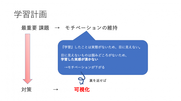 つまり、裏を返せば学習した実態がわかる/学習した実感が湧く状況を作ればモチベ維持できるというわけです。