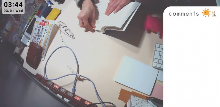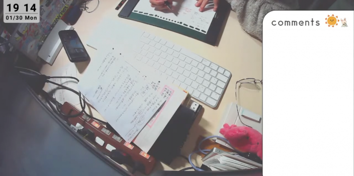 こんな感じでWebカメラを使って、デスクを映し出します⏬