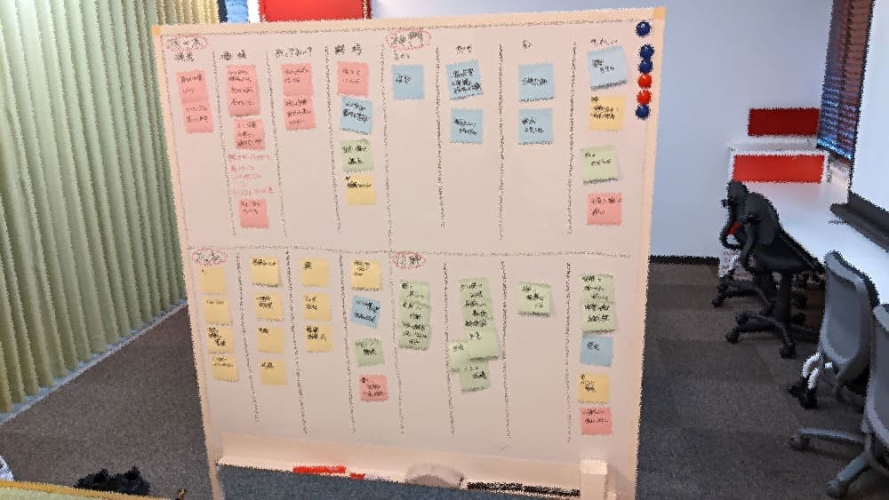 - 1~4までの付箋をホワイトボードに貼り付ける。